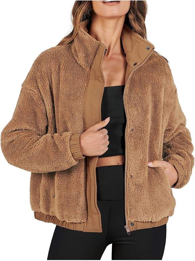 HomeJacket Women Sherpa Fleece Jackets Casual Long Sleeve vet-ixion Women Sherpa Fleece Jackets Casual Long Sleeve Buttons Zip Cropped Coat Winter Outwear Loose Warm Coats Jacket