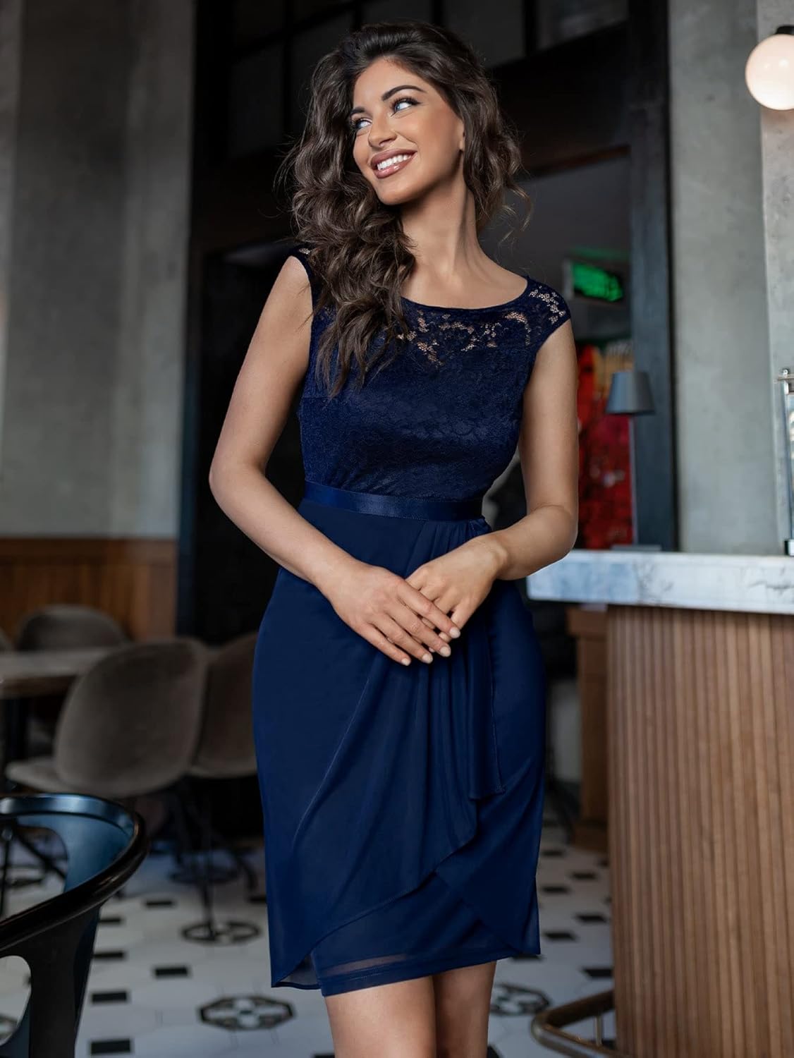 - Add a touch of elegance to your wardrobe with the XIALON Women's Dress Contrast Lace Ruffle Trim Bodycon Dress. This charming piece features contrast lace detailing and delicate ruffle trim, exuding sophistication and allure. Perfect for any occasion, it effortlessly blends chic simplicity with feminine charm. Elevate your style with this versatile bodycon dress and make a statement with your impeccable taste. Ideal for women who appreciate timeless beauty and desire to captivate with their attire.